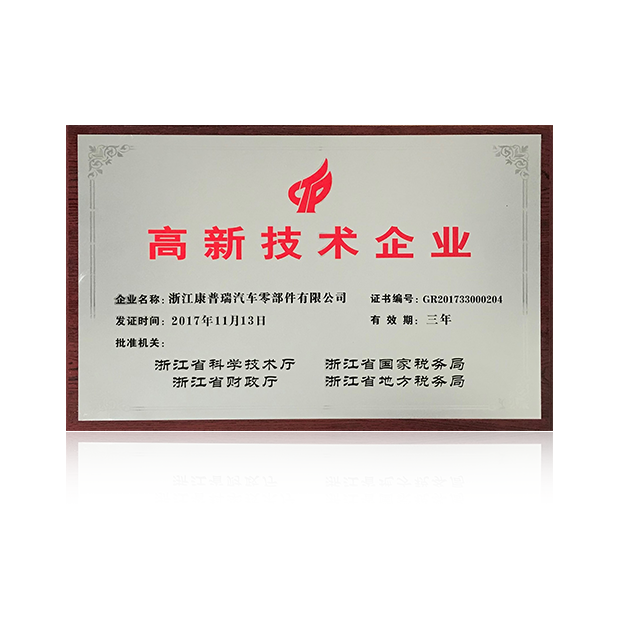 6、宏利汽配通過了國家高新技術企業首次認證;