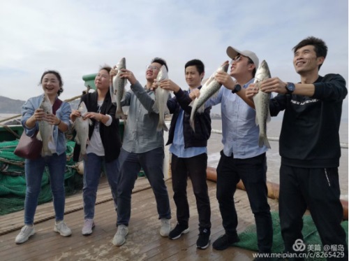 漁網(wǎng)出海水,漁民師傅將網(wǎng)中的魚兒清理中,有:金黃色的魚兒、螃蟹、蝦……剛撈到的魚蝦在漁民師傅的烹飪下,不一會(huì)兒就變成了香、甜、鮮的魚蝦宴了。豐收的喜悅,這一網(wǎng)將海上捕魚掀起了高潮,手捧大魚,來一個(gè)集團(tuán)照,笑容多么燦爛。